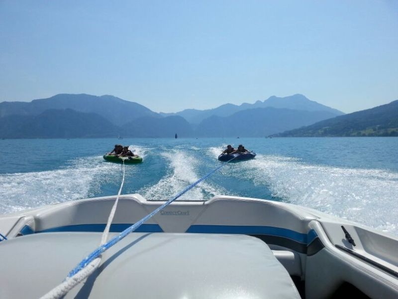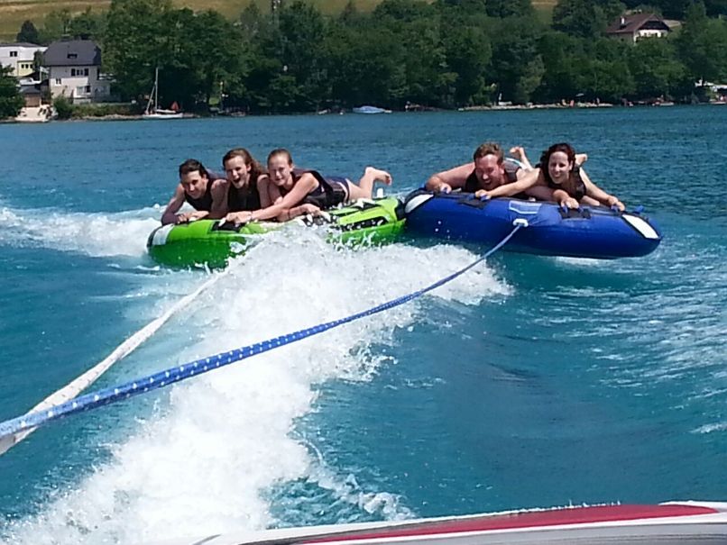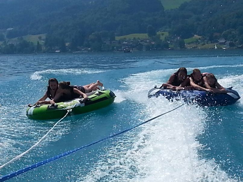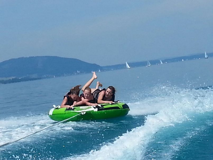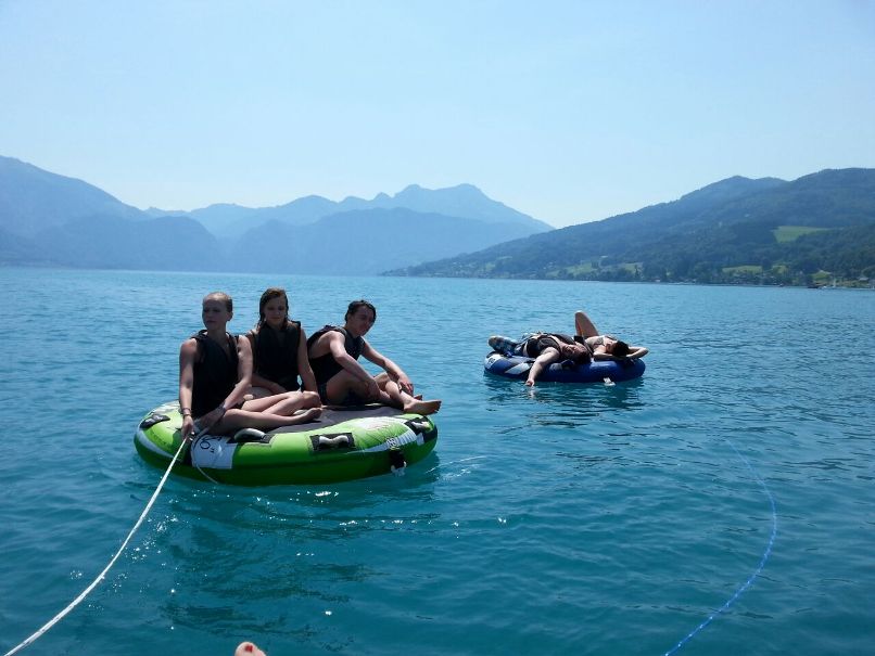| Krönender Abschluss eines unvergesslichen Pfadi-Jahres wurde ein Tagesausflug an den Attersee: Im See abkühlen und in der Sonne liegen, Tubing und dank Motorschaden am Boot chillen AUF dem See. Am Abend fand die Versprechens-Feier statt und nachdem wir uns alle die Bäuche vollgeschlagen haben, ging es wieder nach Hause. |